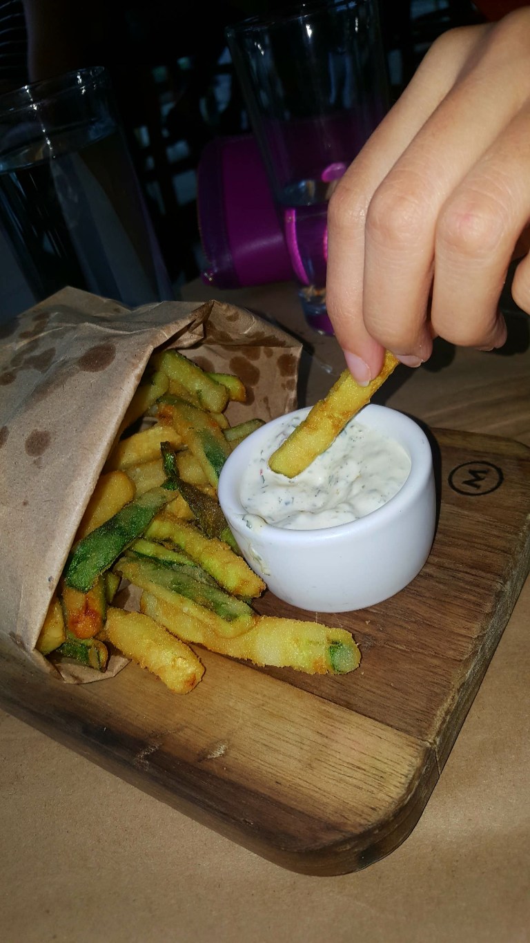 We both ordered the Strawberry Pie Martini, Zucchini fries, and the khale Ceaser Salad. It was all so delicious!